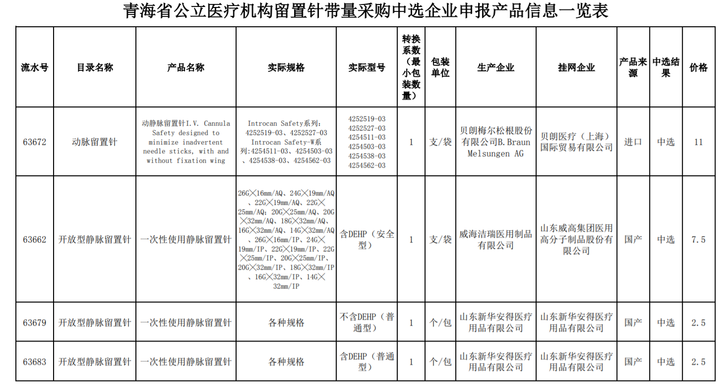 在此之前,8月18日根據(jù)青海日報消息,青海省醫(yī)療保障局組織全省公立醫(yī)療機構醫(yī)用耗材集中采購聯(lián)盟,完成留置針和輸液器集中帶量采購工作。