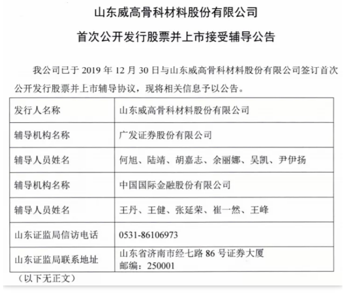 早在2019年12月30日,威高股份就發(fā)布公告稱,內(nèi)幕消息建議分拆威高骨科,并于中國一間證券交易所上市。當(dāng)日,威高骨科財(cái)務(wù)顧問就申請有關(guān)建議分拆上市之上市前輔導(dǎo)過程向中國證券監(jiān)督管理委員會(huì)山東監(jiān)管局提交申請。