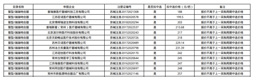 其中,管型/端端吻合器最低擬中選價格188元,最高擬中選價格604元;痔吻合器最低擬中選價格183元,最高擬中選價格364.5元。