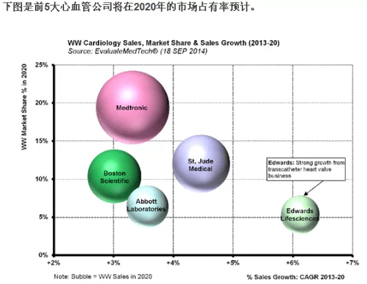 根據(jù)EvaluateMedTech的一份研究報告表明,美敦力將在未來6年,繼續(xù)引領心血管領域的市場。美敦力預計在2020年的全球銷售額將達到111億美金,將與第二大公司圣猶達醫(yī)療保持大幅的差距。而排在前五位的公司將會還有波士頓科學,雅培和愛德華。