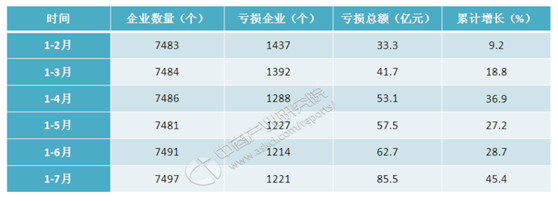 據(jù)9月初中商產(chǎn)業(yè)研究院數(shù)據(jù)顯示:截止2018年7月底,我國(guó)醫(yī)藥行業(yè)規(guī)模以上企業(yè)數(shù)量達(dá)到7497家,其中虧損企業(yè)數(shù)量1221家,虧損面16.3%,較上個(gè)月提高了0.1個(gè)百分點(diǎn),2018年前7個(gè)月醫(yī)藥行業(yè)虧損總額85.5億元,累計(jì)同比增長(zhǎng)45.4%。