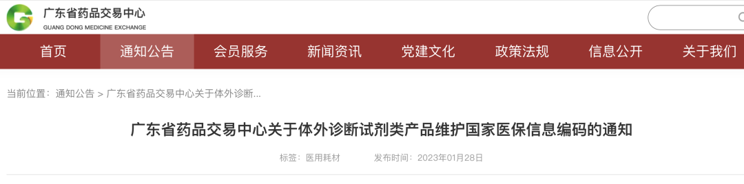 2023年1月28日,廣東省藥品交易中心發(fā)布《關(guān)于體外診斷試劑類產(chǎn)品維護國家醫(yī)保信息編碼的通知》(以下簡稱《通知》),要求體外診斷試劑生產(chǎn)、經(jīng)營企業(yè)開展體外診斷試劑類相關(guān)產(chǎn)品醫(yī)保編碼信息維護工作。