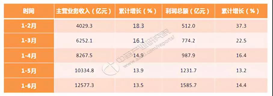 據(jù)中商產(chǎn)業(yè)研究院披露的數(shù)據(jù)顯示,2018年1-6月實(shí)現(xiàn)主營業(yè)務(wù)收入12,577.3億元,利潤總額1,585.7億元;增長率分別為13.5%和14.4%。