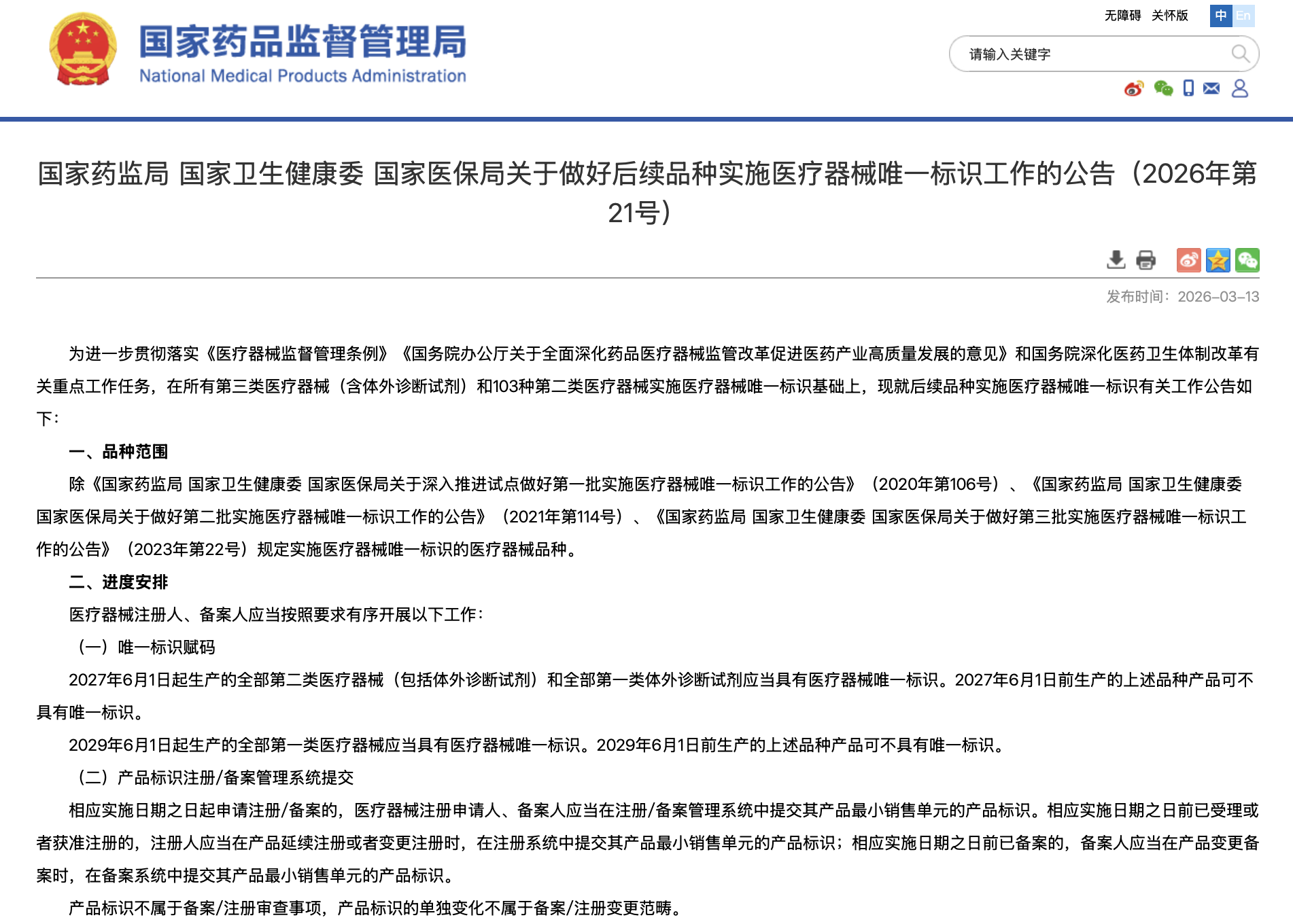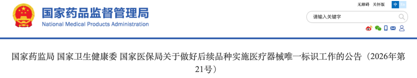 3月13日,國家藥監(jiān)局發(fā)布《國家藥監(jiān)局國家衛(wèi)生健康委國家醫(yī)保局關于做好后續(xù)品種實施醫(yī)療器械唯一標識工作的公告》。