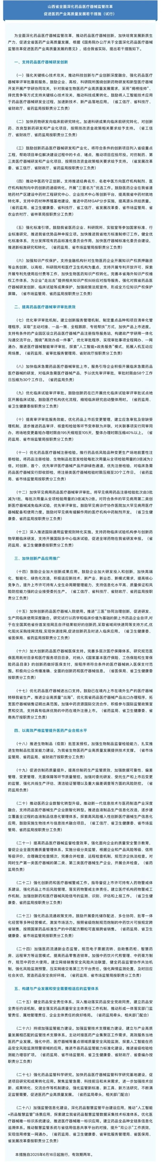 6月16日,國(guó)家藥監(jiān)局官網(wǎng)轉(zhuǎn)發(fā)《山西省全面深化藥品醫(yī)療器械監(jiān)管改革 促進(jìn)醫(yī)藥產(chǎn)業(yè)高質(zhì)量發(fā)展若干措施(試行)》政策解讀。