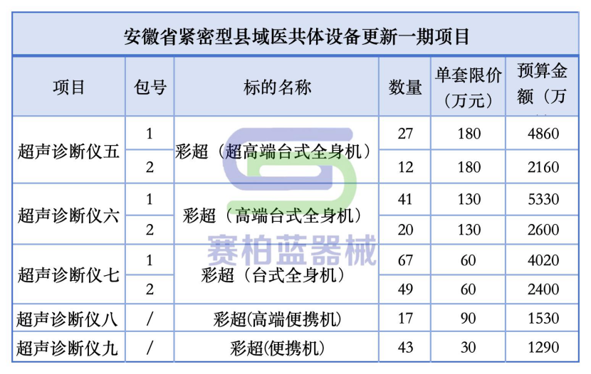 據(jù)觀察,安徽此輪共采購276臺超聲,總預(yù)算金額約2.4億元。