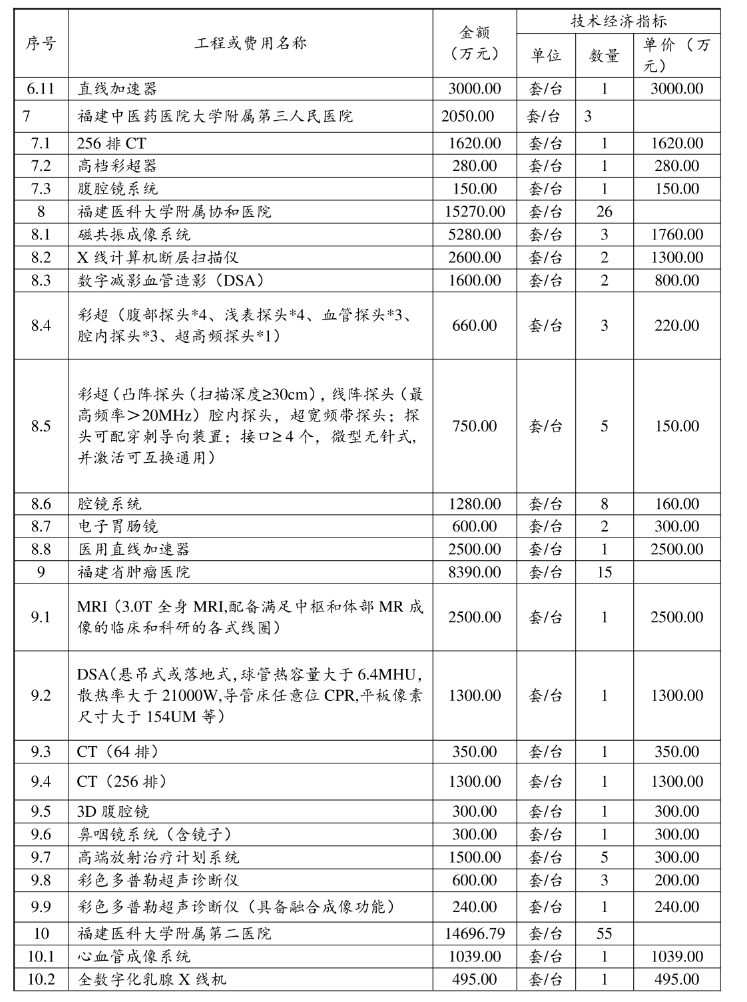 項(xiàng)目建設(shè)規(guī)模及主要內(nèi)容:福建省立醫(yī)院、福建省腫瘤醫(yī)院、福建省級(jí)機(jī)關(guān)醫(yī)院、福建省老年醫(yī)院、福建醫(yī)科大學(xué)附屬協(xié)和醫(yī)院、福建醫(yī)科大學(xué)附屬第一醫(yī)院、福建醫(yī)科大學(xué)附屬第二醫(yī)院、福建中醫(yī)藥大學(xué)附屬人民醫(yī)院、福建中醫(yī)藥大學(xué)附屬康復(fù)醫(yī)院、福建中醫(yī)藥大學(xué)附屬第三人民醫(yī)院等10家醫(yī)院設(shè)備淘汰更新,迭代升級(jí)。