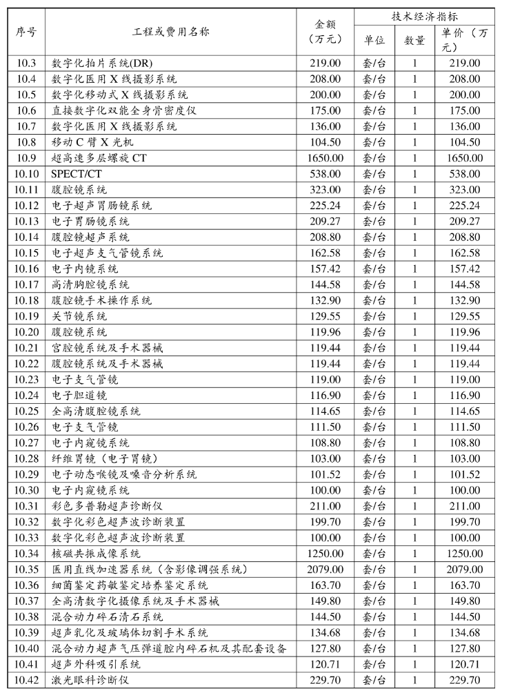 醫(yī)療設(shè)備采購(gòu)預(yù)算及清單出爐