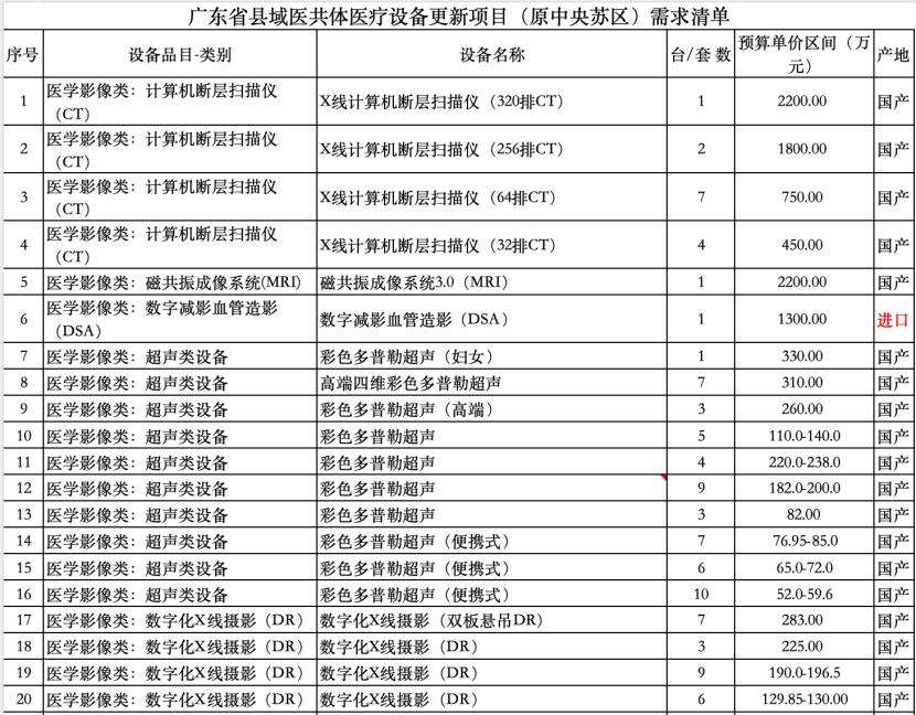 2月24日,廣東省縣域醫(yī)共體醫(yī)療設(shè)備更新項目(原中央蘇區(qū))、廣東省重點醫(yī)院先進醫(yī)療設(shè)備更新項目(粵東、粵西)啟動采購需求調(diào)查征集工作。