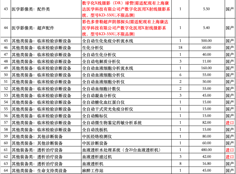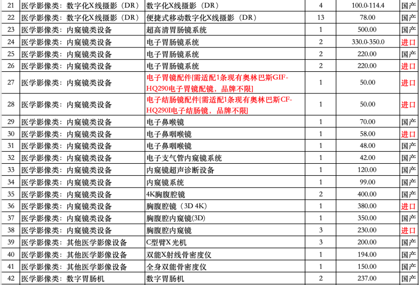 相關(guān)公告顯示,采購覆蓋CT、MR、DR、DSA、超聲、內(nèi)窺鏡、生化分析儀等設(shè)備283臺(套),其中明確了國產(chǎn)/進口需求,總預(yù)算共計約7.09億元。