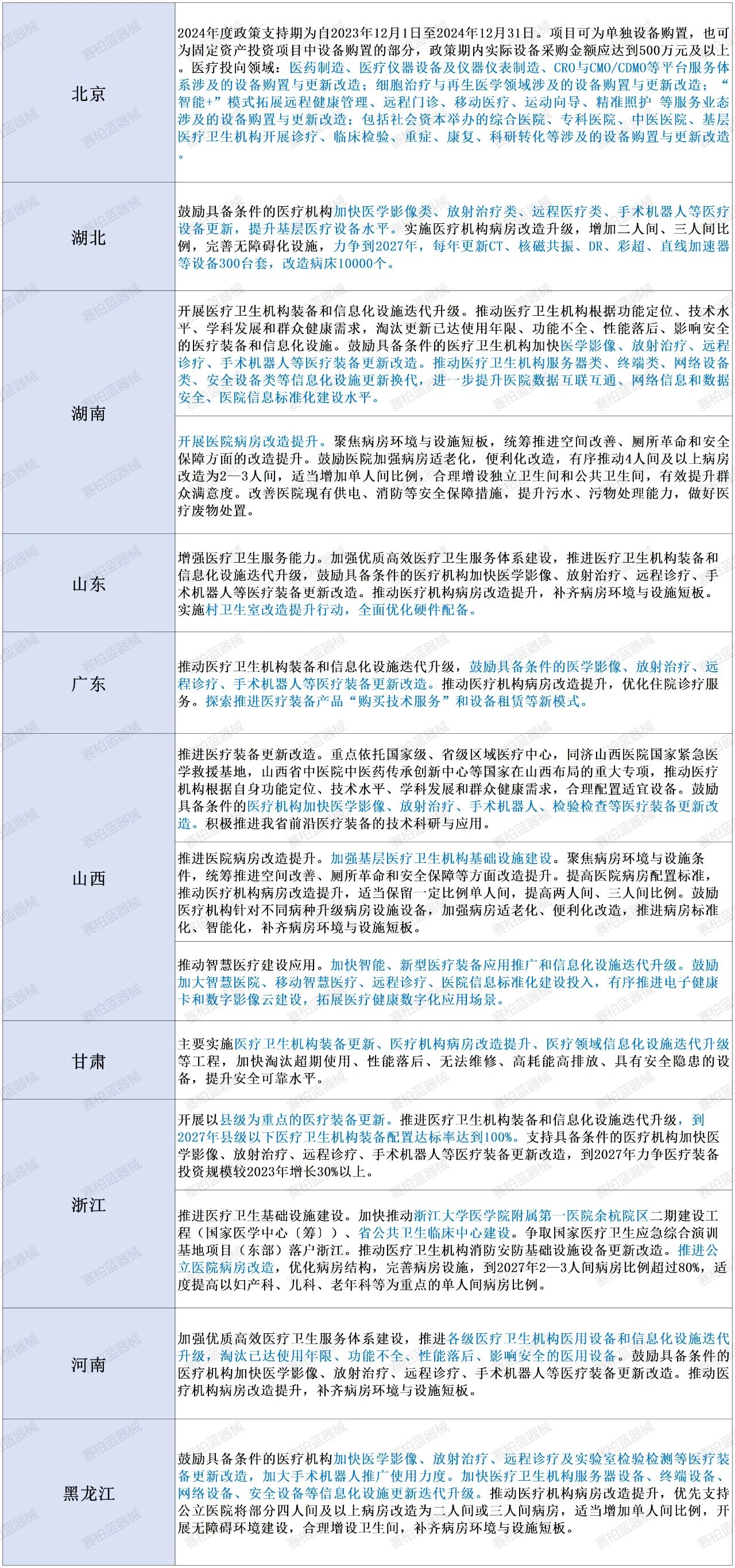 各地設(shè)備更新實(shí)施方案中關(guān)于“醫(yī)療領(lǐng)域部分 ”的內(nèi)容: