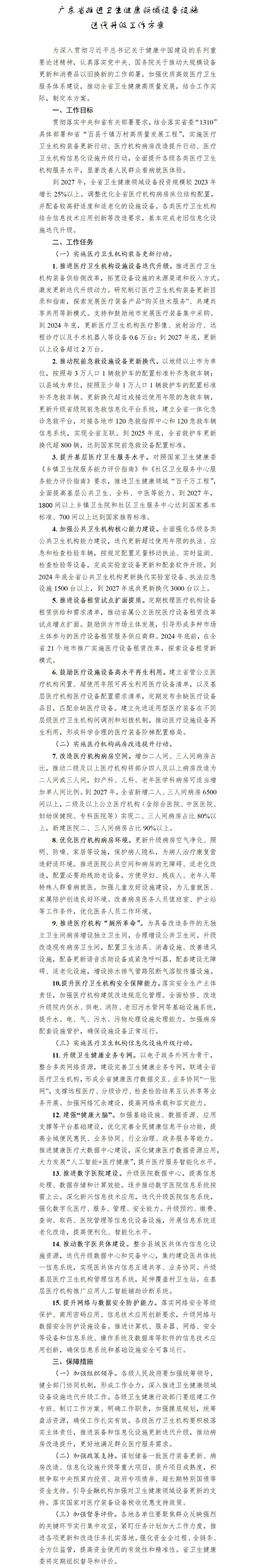 4月21日,廣東衛(wèi)健委印發(fā)《廣東省推進(jìn)衛(wèi)生健康領(lǐng)域設(shè)備設(shè)施迭代升級(jí)工作方案》(以下簡(jiǎn)稱(chēng)《方案》)(完整附文末),明確醫(yī)療設(shè)備更新升級(jí)的3大方面15項(xiàng)具體工作任務(wù)。