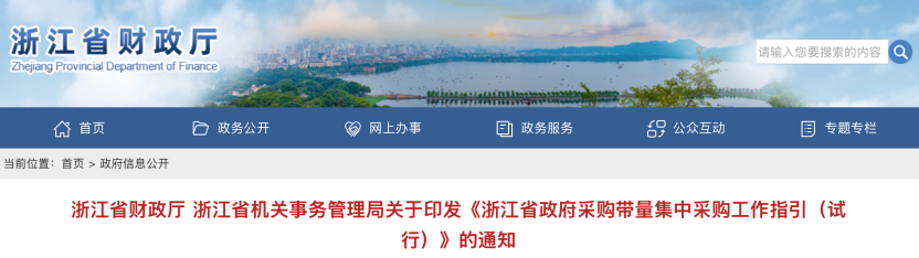 近日,浙江財(cái)政廳發(fā)布《浙江省財(cái)政廳浙江省機(jī)關(guān)事務(wù)管理局關(guān)于印發(fā)<浙江省政府采購帶量集中采購工作指引(試行)>的通知》,指引自2025年7月1日起施行。