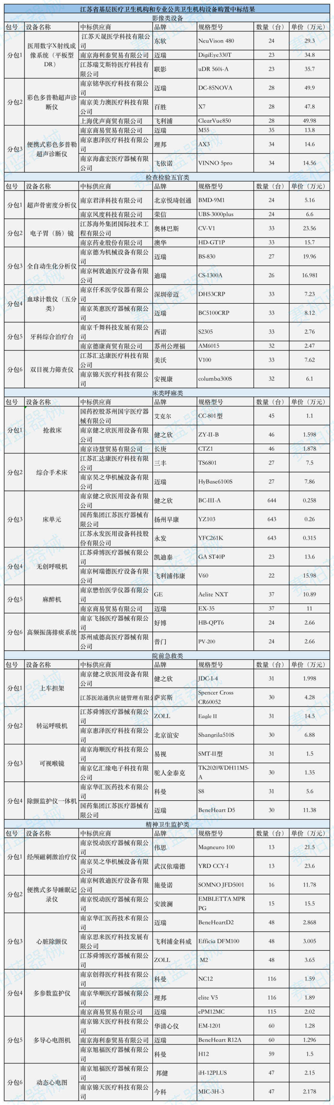 最終,2.52億采購項(xiàng)目,以1.84億元全部中標(biāo)。其中中標(biāo)項(xiàng)目最多的是邁瑞醫(yī)療,共中標(biāo)11個(gè)項(xiàng)目,463臺(tái)設(shè)備總價(jià)高達(dá)4896萬。