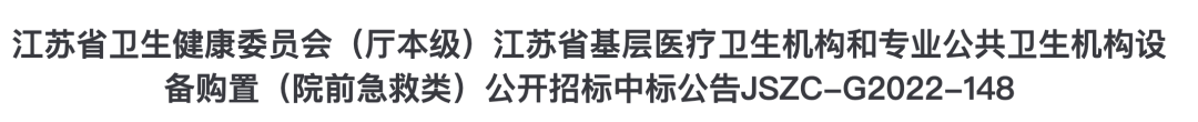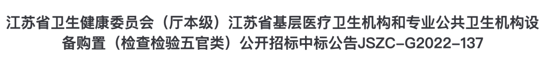 近日,江蘇省衛(wèi)生健康委員會(huì)(廳本級(jí))江蘇省基層醫(yī)療衛(wèi)生機(jī)構(gòu)和專業(yè)公共衛(wèi)生機(jī)構(gòu)設(shè)備購置項(xiàng)目中標(biāo)結(jié)果公布。