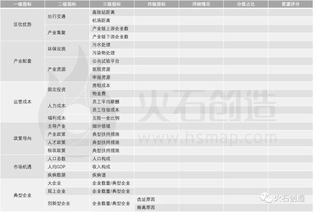 深入研究企業(yè)選址決策邏輯,協(xié)助企業(yè)做出科學(xué)合理的投資選址方案,需要建立一個(gè)系統(tǒng)的科學(xué)量化指標(biāo),因?yàn)椴煌A段的生物醫(yī)藥企業(yè)對(duì)承載空間、產(chǎn)業(yè)資源、政策支持等方面的需求也不盡相同。