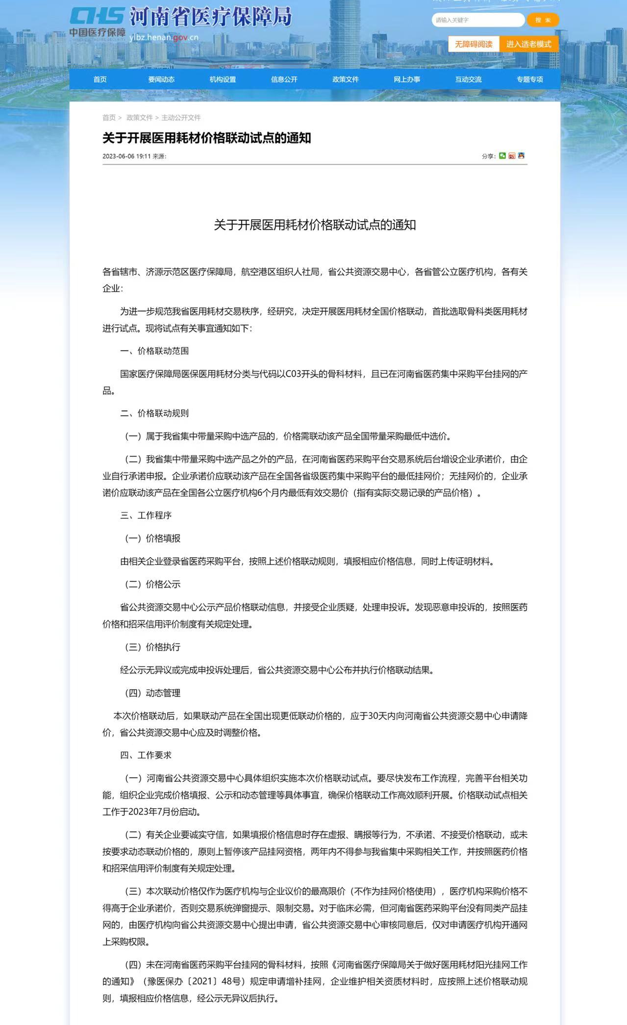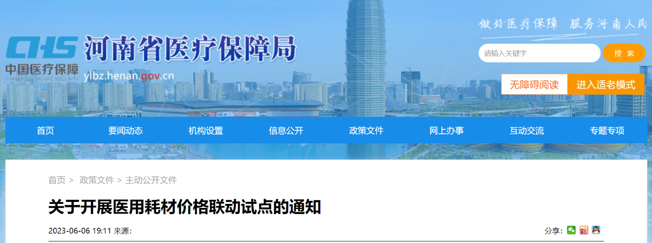 6月6日,河南醫(yī)保局發(fā)布《關(guān)于開展醫(yī)用耗材價(jià)格聯(lián)動(dòng)試點(diǎn)的通知》(簡(jiǎn)稱《通知》),首批選取了骨科類醫(yī)用耗材進(jìn)行試點(diǎn)。