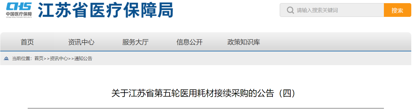 1月2日,江蘇醫(yī)保局發(fā)布《關于江蘇省第五輪醫(yī)用耗材接續(xù)采購的公告(四)》。