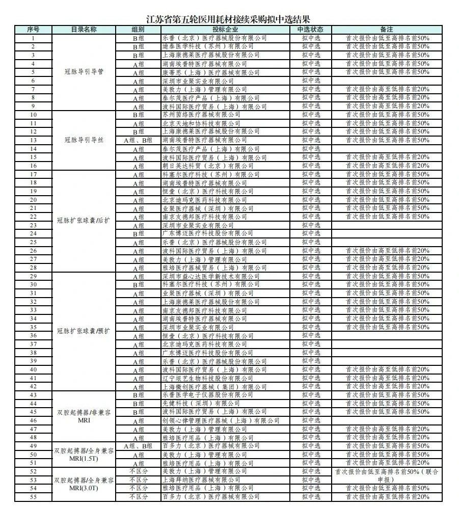 根據公告,江蘇省第五輪醫(yī)用耗材接續(xù)采購完成了網上競價和價格糾偏等工作,專家組對網上競價和價格糾偏過程進行了評審,并根據采購規(guī)則產生擬中選結果,名單如下: