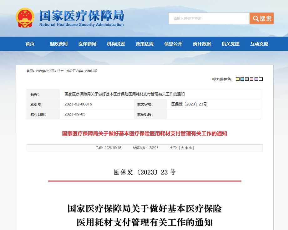 今日(9月5日),國家醫(yī)保局發(fā)布《國家醫(yī)療保障局關(guān)于做好基本醫(yī)療保險醫(yī)用耗材支付管理有關(guān)工作的通知》(以下簡稱《通知》)(文末附全文)。