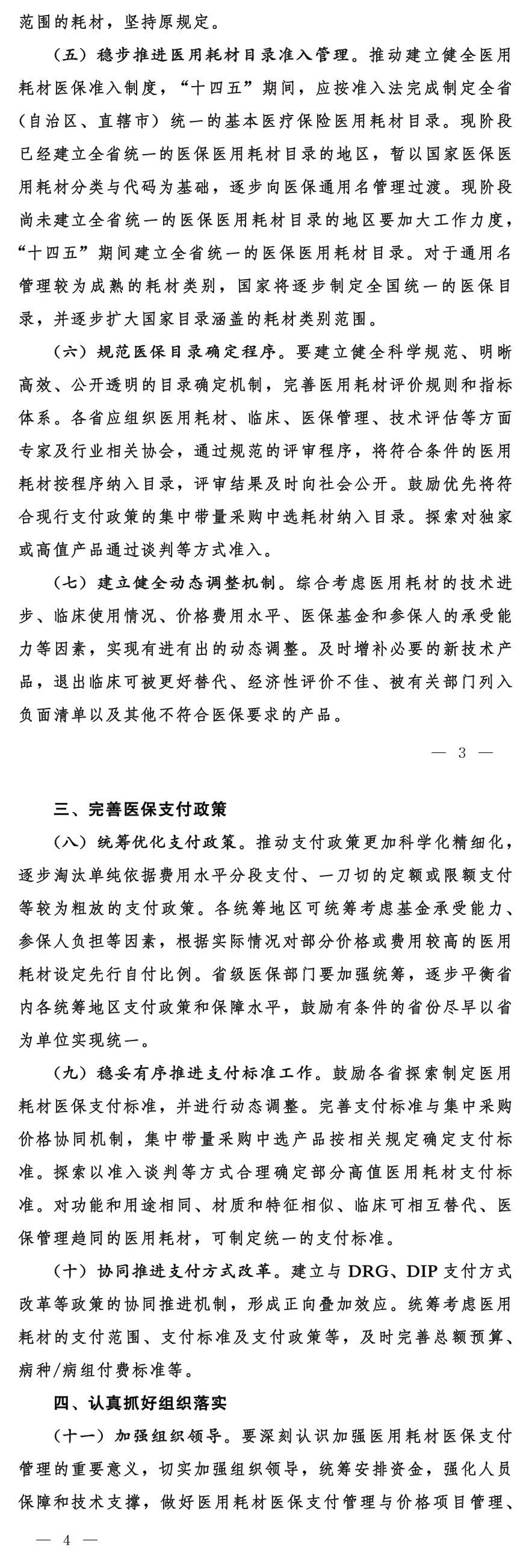 協(xié)同推進支付方式改革。建立與DRG、DIP支付方式改革等政策的協(xié)同推進機制,形成正向疊加效應(yīng)。統(tǒng)籌考慮醫(yī)用耗材的支付范圍、支付標(biāo)準(zhǔn)及支付政策等,及時完善總額預(yù)算、病種/病組付費標(biāo)準(zhǔn)等。
