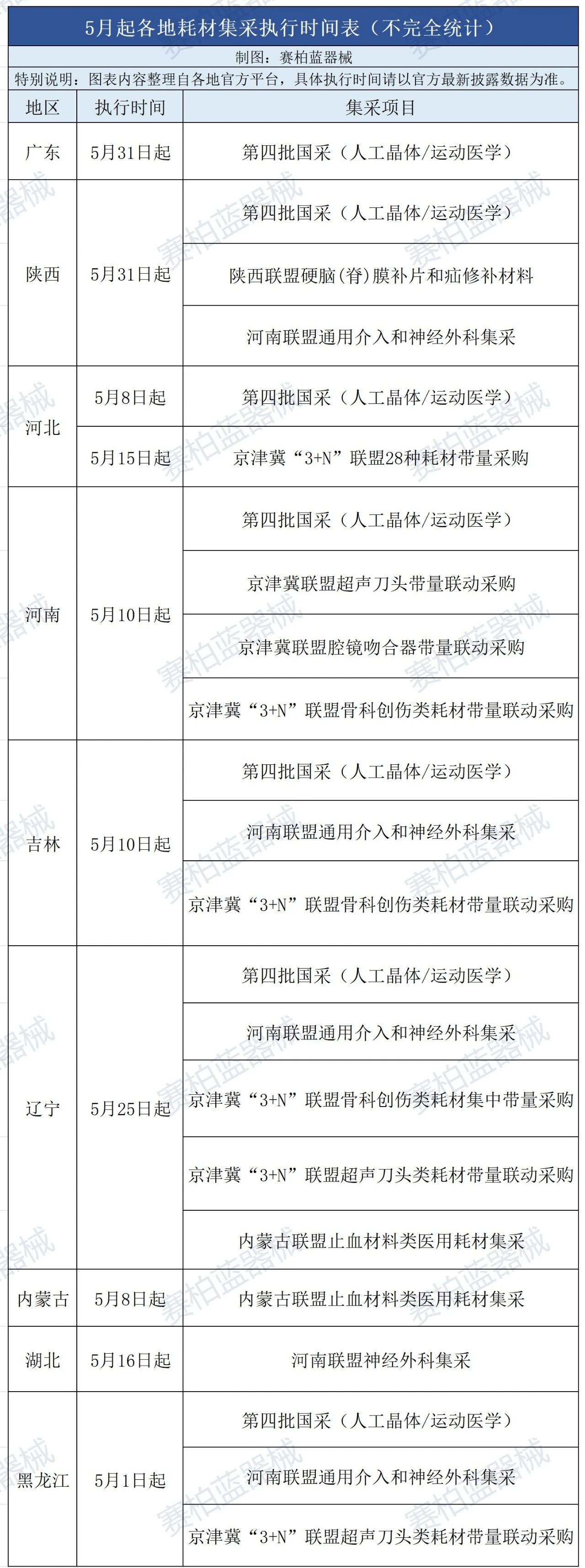 據(jù)賽柏藍(lán)器械不完全統(tǒng)計(jì),5月將有廣東、陜西、河北、河南、吉林、遼寧、內(nèi)蒙古、湖北等多地迎來相關(guān)耗材的新一輪降價(jià)。