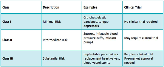 國家對醫(yī)療器械按照風(fēng)險程度實行分類管理:第一類是指風(fēng)險程度低,實行常規(guī)管理可以保證其安全、有效的醫(yī)療器械;第二類是指具有中度風(fēng)險,需要嚴(yán)格管理以保證其安全、有效的醫(yī)療器械;第三類是指具有較高風(fēng)險,需要采取特別措施嚴(yán)格控制管理以保證其安全、有效的醫(yī)療器械。