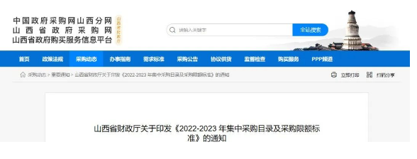 近期,山西省財政廳發(fā)布了《2022-2023 年集中采購目錄及采購限額標(biāo)準(zhǔn)》的通知(以下簡稱通知)。