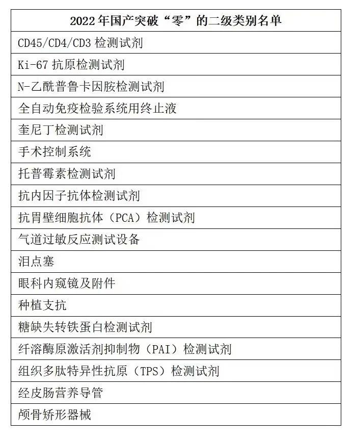 從具體領(lǐng)域來看,我國共有18個二級類別的產(chǎn)品在2022年獲得了“零”的突破,其中有超過60%的“零”突破主要集中在體外診斷領(lǐng)域。