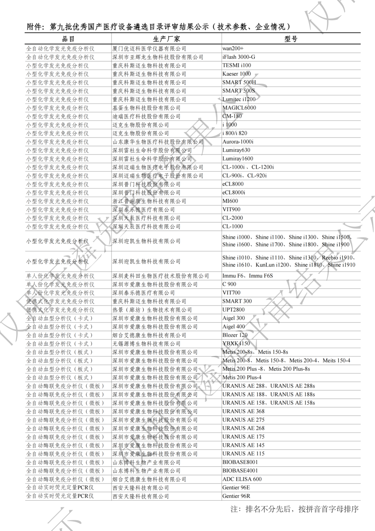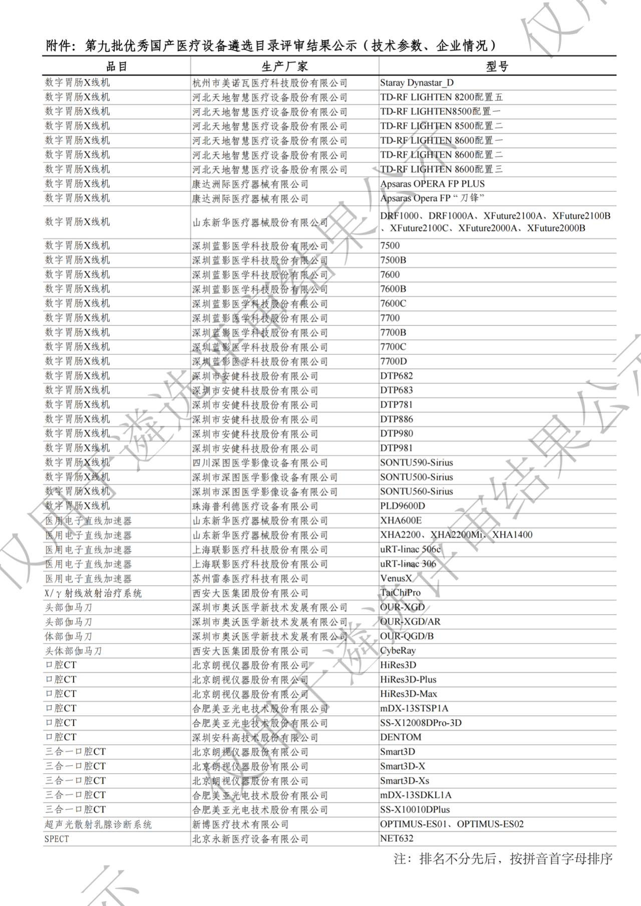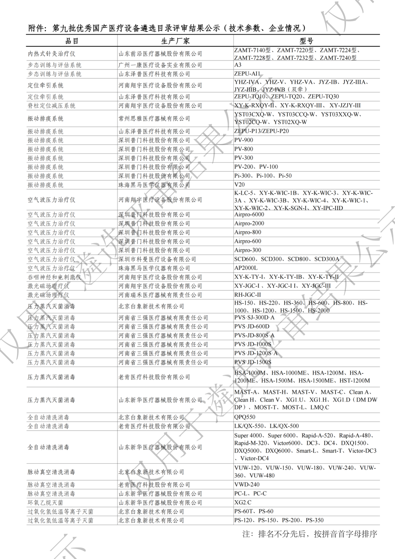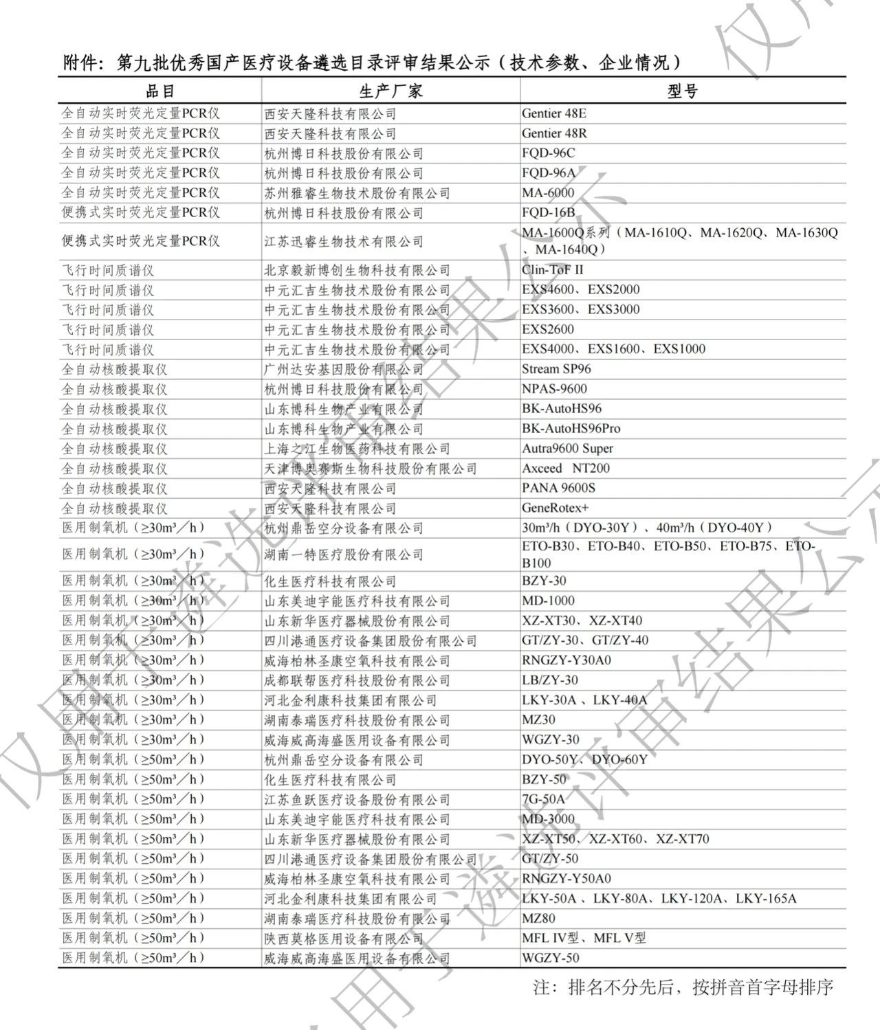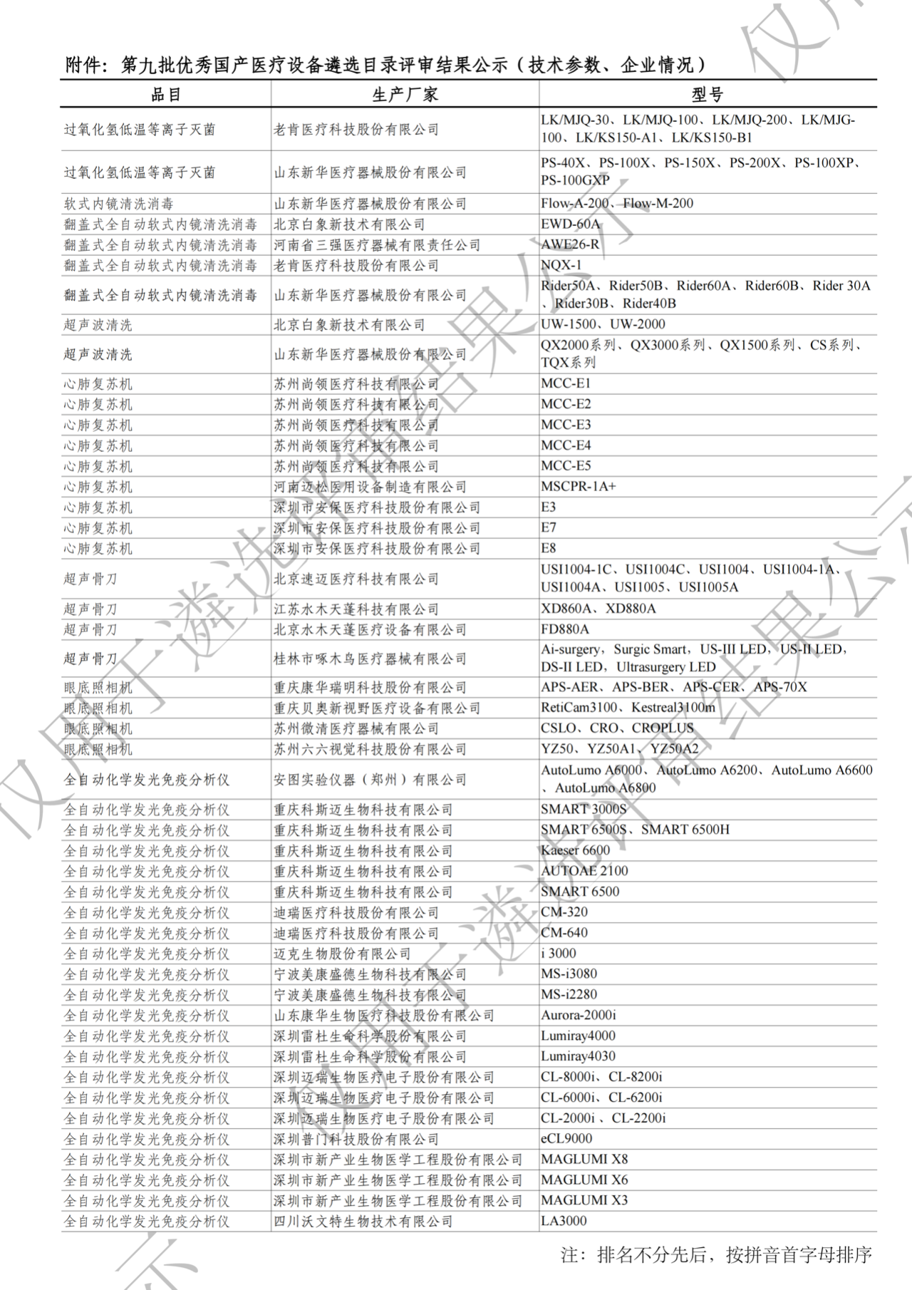 附:第九批優(yōu)秀國產(chǎn)醫(yī)療設(shè)備產(chǎn)品目錄