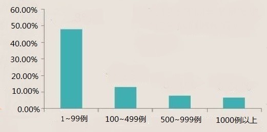 而2011年8月出臺(tái)的《心血管疾病介入診療技術(shù)管理規(guī)范(2011年版)》允許滿足規(guī)范要求硬性條件和相關(guān)規(guī)定的二級(jí)醫(yī)院開展心血管介入治療手術(shù)。而事實(shí)也表明,在2013年開展1~99例的醫(yī)院,PCI手術(shù)數(shù)年增長率達(dá)48.08%,遠(yuǎn)遠(yuǎn)超過全國平均的增速(圖4)。