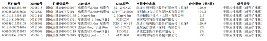 其中冠脈擴(kuò)張球囊擬中選企業(yè)包括深圳市順美醫(yī)療股份有限公司、深圳市益心達(dá)醫(yī)學(xué)新技術(shù)有限公司、依奈德醫(yī)療技術(shù)(上海)有限公司等,上述三家企業(yè)報(bào)價(jià)分別為129.9元、194.5元、215元。