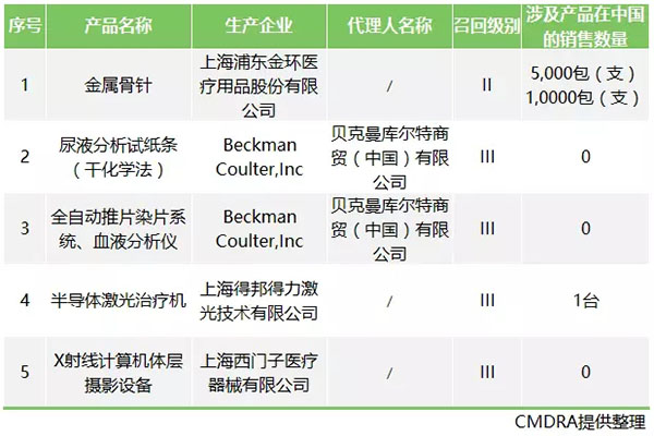 近期,國家食品藥品監(jiān)督管理總局發(fā)布一批召回信息,共涉及5個產(chǎn)品。其中包括1項(xiàng)II級召回,4項(xiàng)III級召回。詳情如下: