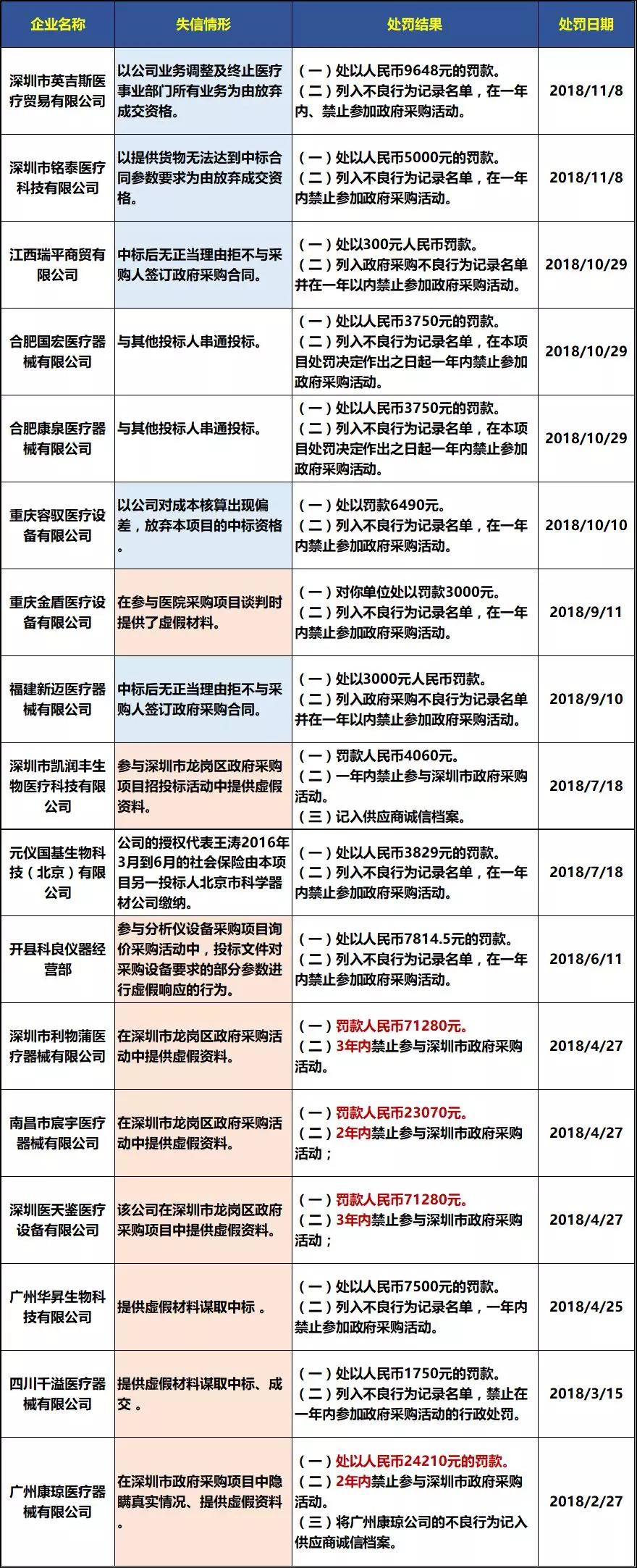 深圳市利物蒲醫(yī)療器械有限公司和深圳醫(yī)天鑒醫(yī)療設(shè)備有限公司在“政府采購項目中提供虛假資料”的失信行為可謂是正中雷區(qū),最終被罰了個慘。