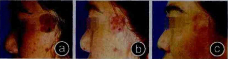 3.治療后處理:暴露創(chuàng)面,外用抗生素眼膏,待創(chuàng)面結(jié)痂并自行脫落,術(shù)后半年注意防曬。術(shù)后1個月復(fù)診,必要時增加復(fù)診次數(shù),若復(fù)發(fā)再次治療至少為術(shù)后1個月。