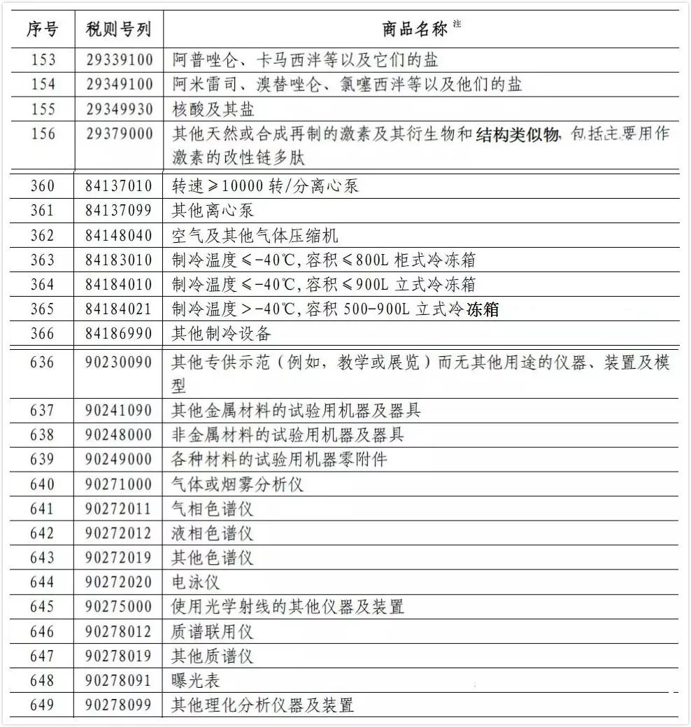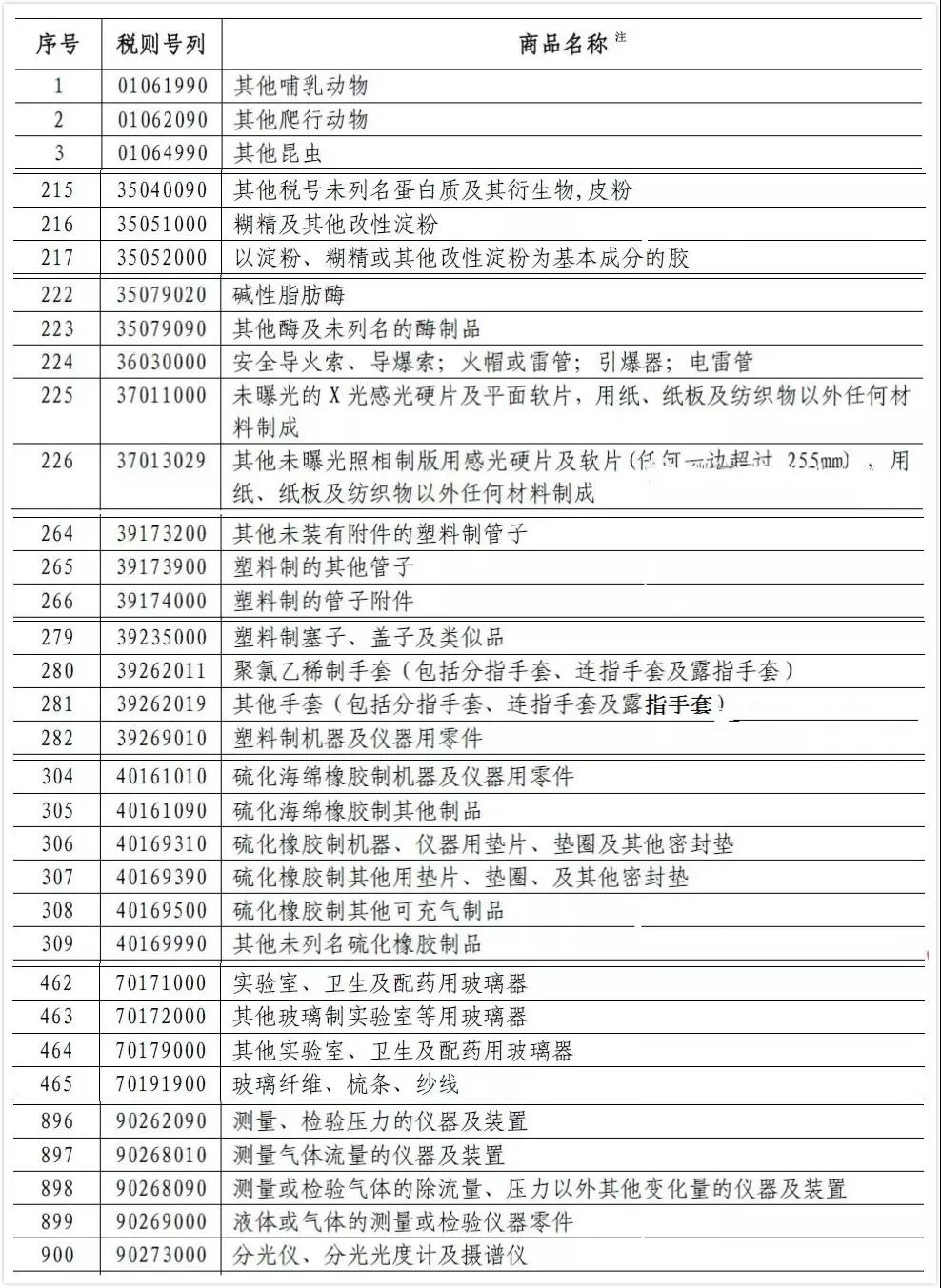 附件4所涉及的生物試劑和實(shí)驗(yàn)室常用物品(加征5%的關(guān)稅)