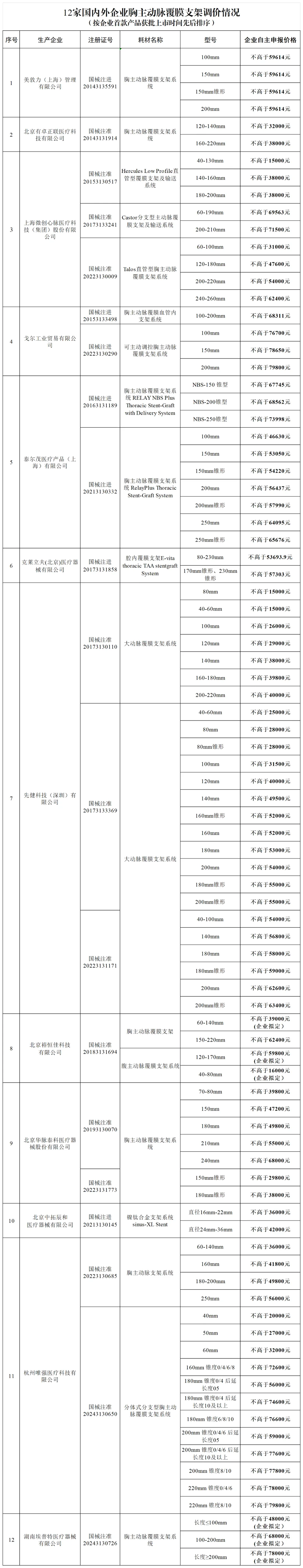 除心脈醫(yī)療外,11家國內(nèi)外企業(yè)集體也重新制定了胸主動脈覆膜支架產(chǎn)品價格,整體價格明顯下調(diào)(具體見文末)。