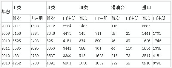 表2: 2007—2013中國(guó)醫(yī)療器械注冊(cè)統(tǒng)計(jì)情況(單位:件)