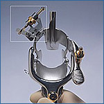 輕便照明燈可任意夾在普通的陰道窺鏡上。