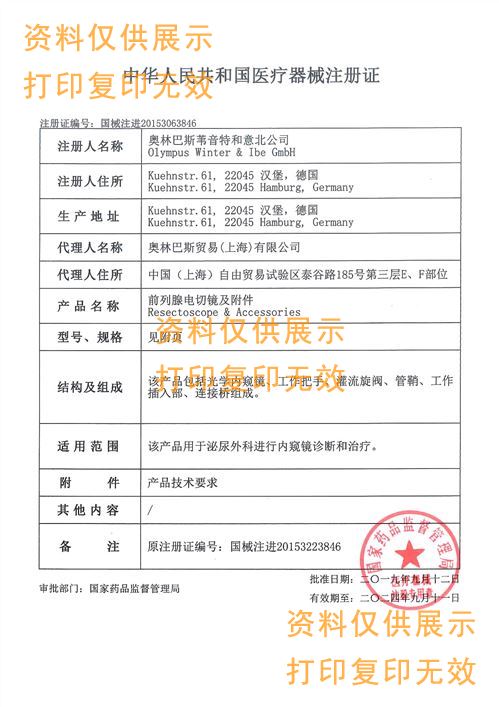 該產(chǎn)品用于泌尿外科進行內(nèi)窺鏡診斷和治療。